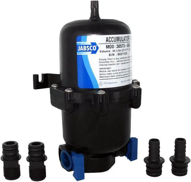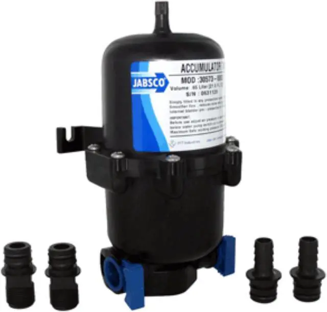 Mini Accumulator TankPart #: 30573-0003This accumulator tank is intended for installation in any pumped water system controlled by a pressure switch, and may also be used with air-driven pumps. The tank can serve as a storage vessel as well as a pulsation dampener for pressurized fluid. The accumulator tank smoothes water flow and reduces on/off switch cycling of the pump by lessening the variation in pressure and flow between the pump and the system discharge points. The even flow of water gives better control of hot water temperature with systems using instant water heaters.