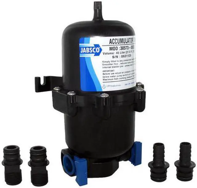 Features: Internal bladder Smoother flow Quieter water system Longer pump life Easily fitted to new or existing systems Compact size Quick-connect/disconnect port flttings Mounting point for optional pressure switch Food grade materials, NSF Standard 18 listed
