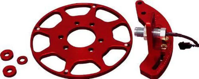 Racers have always been inventive and willing to fabricate the parts they need if nothing is available. Building a crank trigger system is not an easy task but there has been an increasing number of unique front hub systems and distributor less ignitions that require one. MSDs universal flying magnet crank trigger kit will give you a head start in dabbing a custom kit for your application. This kit is supplied with everything youll need to get you going in the right direction. A 7 In. billet aluminum wheel is supplied that has magnet positions for 4, 6, 8, 10 or even 12-cylinder engines.