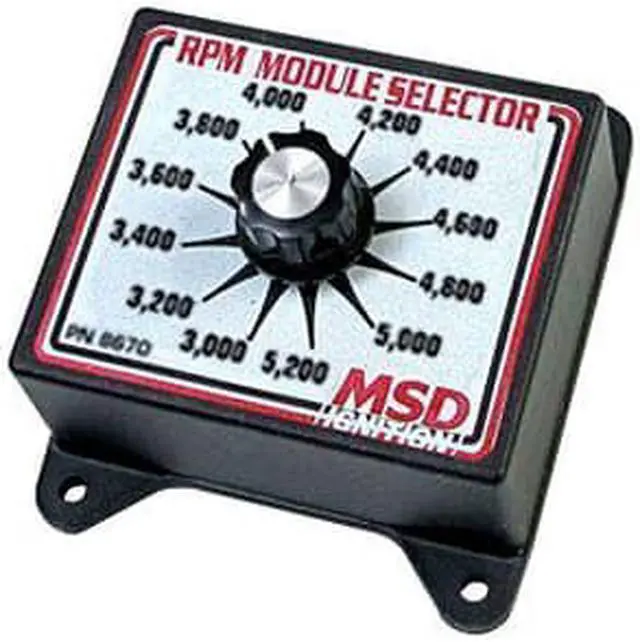 The MSD RPM Module Selectors give you a full selection of RPM values to choose from. The Modules work in any of the MSD Soft Touch Rev Controls or RPM Controllers. The MSD RPM Module Selector is equipped with a positive stop knob that can be used to select any one of twelve different rpm limits. The Modules come in sets of five within a 1, 000 rpm range.