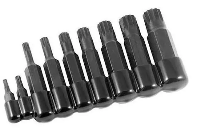 • Nine Piece Triple Square (12 point) Bits to Fit 4, 5, 6, 8, 10, 12, 14, 16 and 18 millimeter Sizes