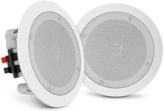 The Pyle In-Wall/Ceiling Speakers deliver stereo sound to any room in your home or office. Each speaker comes equipped with a high compliance polymer tweeter delivering a full, rich sound without cluttering floor space. Speakers are made of ABS material and include changeable round and square grills. The system features spring-loaded speaker terminals for quick connection and comes with a cut-out template for easy installation. Mount them in a convenient location on the wall or ceiling for a flush, clean look. Achieve wide-range sound performance and add audio to any room with the Pyle In-Wall/Ceiling Speakers.