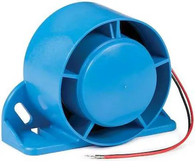 Vehicle Backup Alarm, Alarm Type Selectable, Alarm Tone Type Tonal, Maximum Sound Level 112 dB, Operating Voltage 12-24V DC, Minimum Sound Level 107 dB, Overall Length 2 13/16 in, Overall Width 5 13/16 in, Overall Height 5 13/16 in, SAE Type Rating Type F, Connector Type Blunt Cut Wire, Mount Type Grommet, IP Rating Not Applicable, Speaker Direction Reverse-Facing, Vehicle Class Not Applicable, Color Blue, Housing Material Glass/Nylon, Current 0.3 A, Features Adjustable Output Levels. This item has been restricted from sale in the following state (s): []