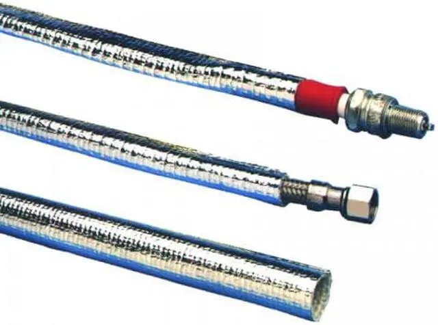 The new lamination of a high-temperature fabric to a highly-reflective foil is the makeup of Thermo-Sleeve which provides protection from radiant heat for hoses and wires. Thermo-Sleeves ultra light-weight construction provides more insulating than traditional bulky rubber-coated fiberglass.