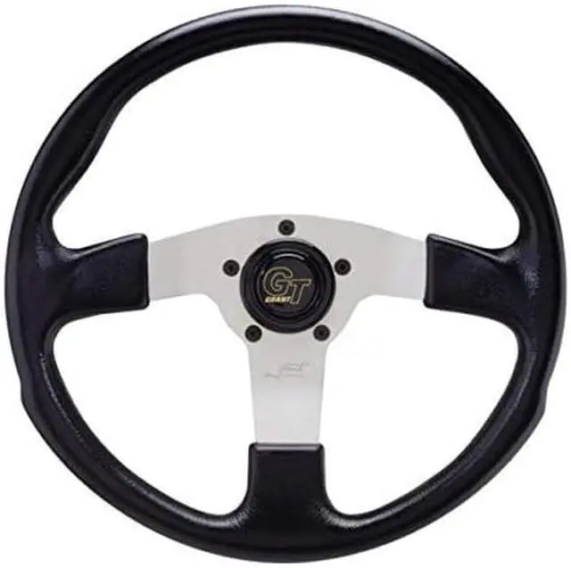Patterned after the most popular rally car look. This is a solid 3 spoke design. Molded cushion grip contoured to the shape of the hand with a leather grained finish. This is a great affordable solution for a wheel with incredible styling. A Grant Installation Kit is necessary to mount this wheel to a vehicle. This wheel will work with Grant Standard 3000 or 4000 Series, Billet 5000 Series, or Euro 6000 Series Installation Kits.