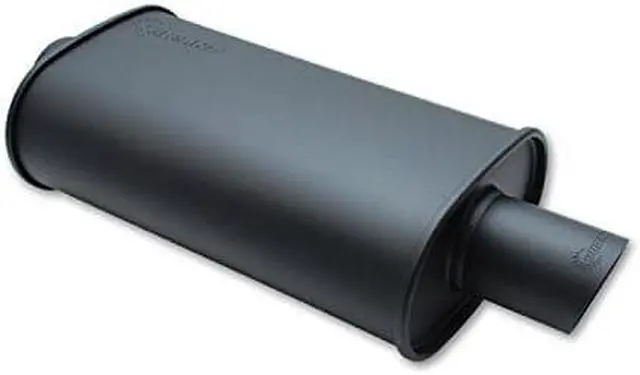 Vibrant Streetpower Black Flat Oval Muffler is designed to minimize the noise produced by the vehicles operating system. It is constructed from T304 stainless steel and features a "True Straight Through" perforated core to avoid performance loss. This muffler is compact..