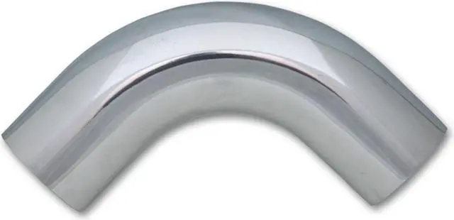 Vibrant Polished Aluminum 90 Degree Bend is a utility for fabricating custom intercooler pipe assemblies or air intake kits. It is constructed from 1.5 mm thick T6061 Aluminum which enables easy welding..