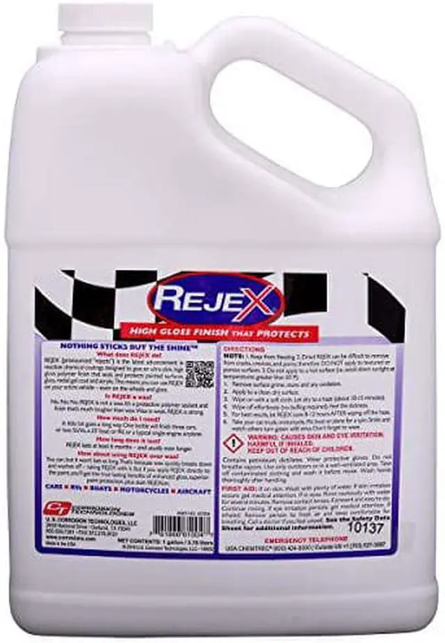 SPACE AGE PROTECTION FOR YOUR CAR, TRUCK, BOAT, RV, AIRPLANE & MOTORCYCLERejeX (TM) by Corrosion Technologies is a thin-film polymer coating designed to provide a high-release surface. This very thin film less than a micron thick prevents stains and adhesion of common contaminants such as exhaust, bugs, oil, tree sap, bird droppings, road grime, brake dust, etc. It also makes graffiti easy to remove and can be applied to windshields to repel rain. Its easy to apply and produces a deep, lustrous shine that outlasts the most popular waxes by months.
