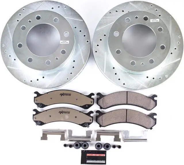 • The Power Stop Z36 Truck and Tow Performance brake kit provides the superior stopping power demanded by those who tow boats, haul loads, tackle mountains, lift trucks, and play in the harshest conditions. The brake rotors are drilled to keep temperatures down during extreme braking and slotted to sweep away any debris for constant pad contact. Combined with our Z36 Carbon-Fiber Ceramic performance friction formulation, you can confidently push your rig to the limit.
