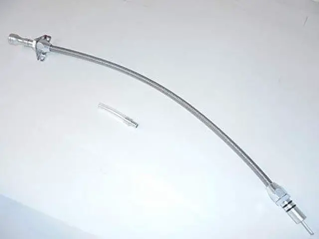 • This RPC Racing Power Company non-locking firewall mount Auto Trans Dipstick has steel braided tube and aluminum handle.
