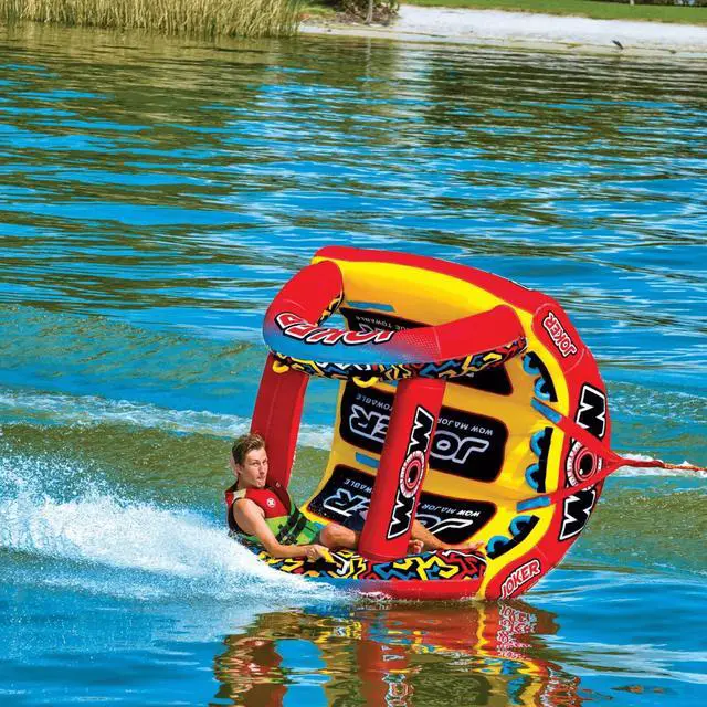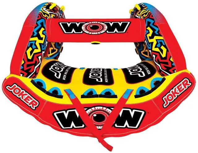 WOW isn't joking around when it comes to making Major League Towables. The JOKER is the latest and greatest on the water. Don't be a fool at the lake and BE SEEN, this HIGH-PROFILE design will sure draw some attention and entertain the ones brave enough to ride AND the bystanders alike. Built with a state-of-the-art design, introducing the exclusive WOW POWER TOWER. The Power Tower System gives riders countless options when it comes to how they ride. Stand, Kneel, Sit, Lay or even Handstand, if you're a jokester like that. The winged bottom minimizes the drag and hugs the riders so they can feel secure even when it gets out of hand Riding solo? Guide your ride using the Power Tower as leverage to steer and glide across the waves.