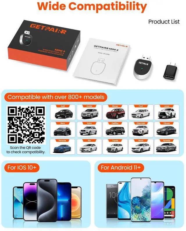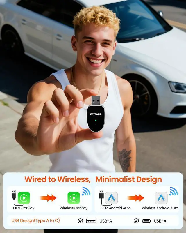 The GETPAIRR wireless CarPlay adapter supports 800+ cars—just plug in and go. No apps, no cables. Ideal for couples or families using iPhones. Enjoy smooth apple CarPlay wireless adapter features like maps, music, and calls. Compact, auto-reconnecting, and easy to use.