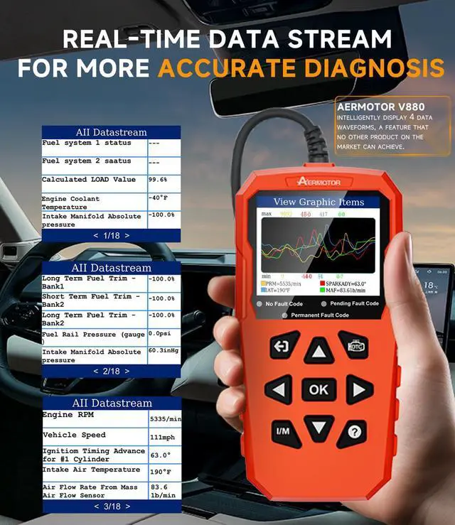 V880 reads fault codes instantly, pinpointing issues to avoid unnecessary repairs and save money