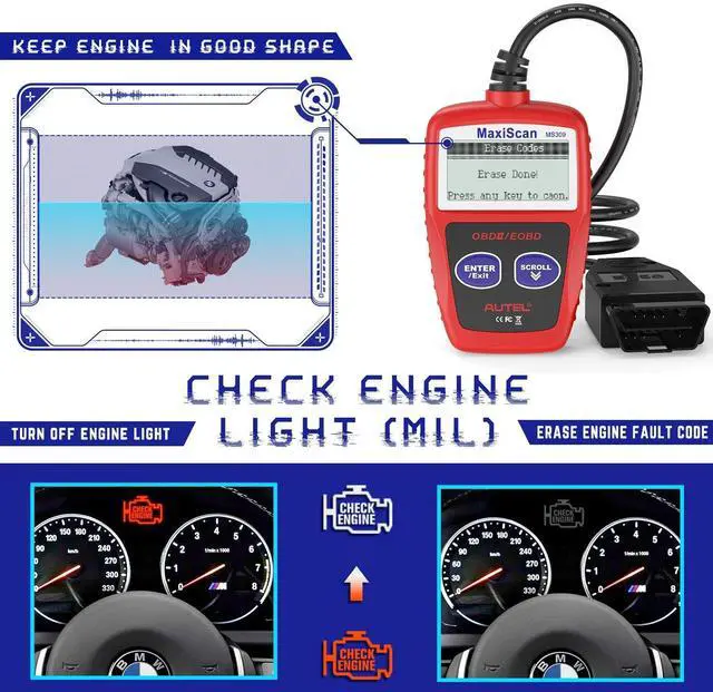 Plug & Play Autel MS309 OBD2 Scanner Engine Fault Code Reader, Read Vehicles VIN, Freeze Frame Data, DTCs Definitions, Battery-Free