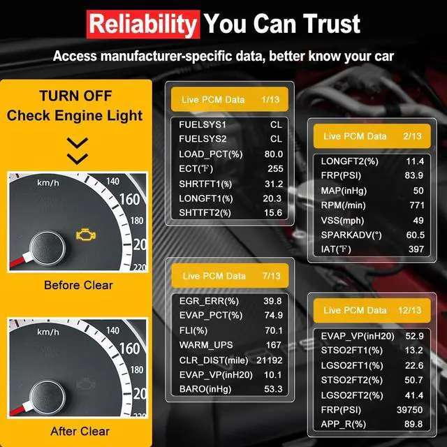 | System Support | iOS (iPhone & iPad), Android & Windows | iOS (iPhone & iPad), Android & Windows | iOS (iPhone & iPad), Android & Windows | Diagnose Vehicle Engine System |