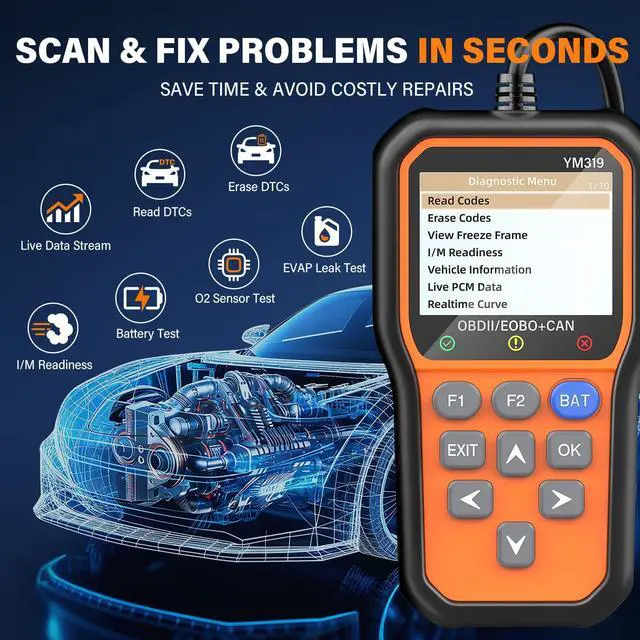 The YM319 OBD2 Scanner focuses exclusively on engine problems. It's great for reading and clearing the "Check Engine" light, but it cannot access other systems in your car like the ABS, SRS, or transmission systems.