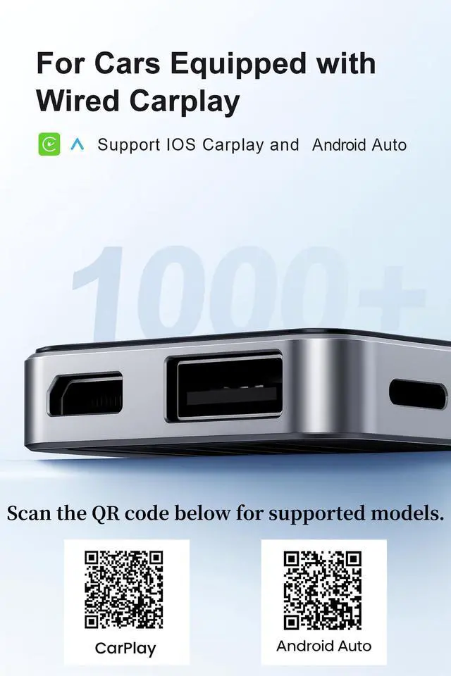 Fully compatible with Wireless CarPlay & Wireless Android Auto, enabling seamless connection between smartphone and car system. Supports iPhone 7+ (iOS 10.0+) and Android 11.0+ devices. Plug and play, no cables required.