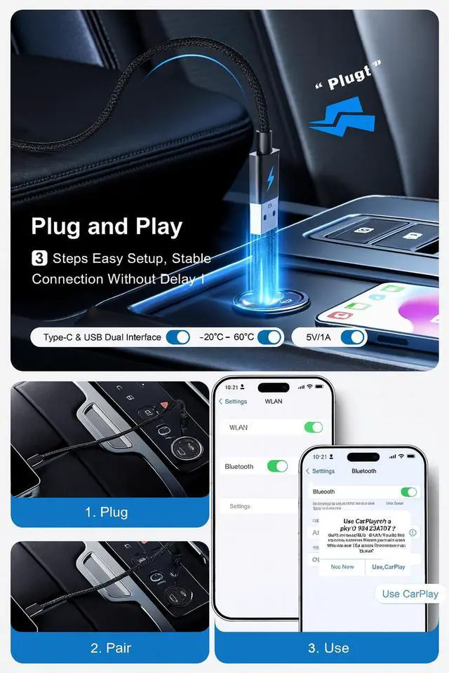 Compatible with over 95% of OEM CarPlay systems, with auto-adaptive updates reducing compatibility issues to below 2%.