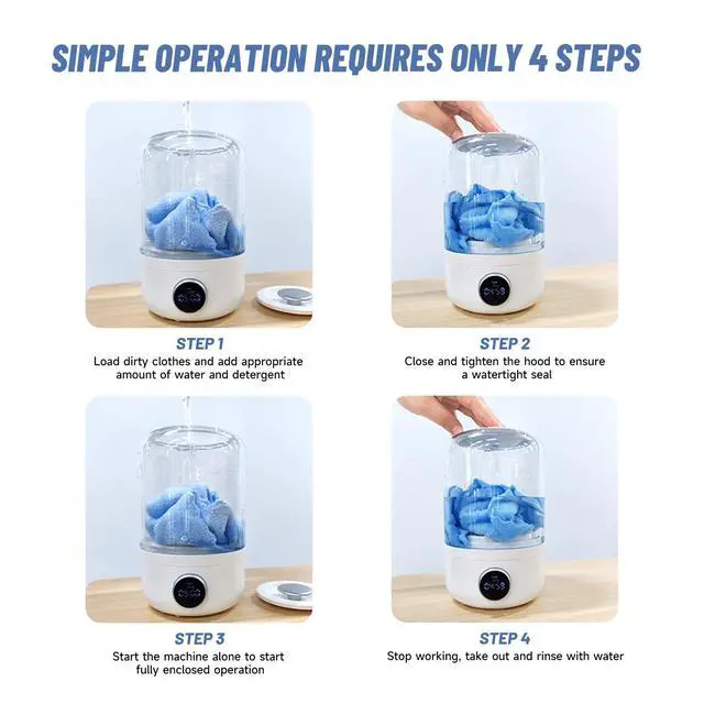 This smart laundry cup is your ideal choice for convenient laundry. Mini Lavadora breaks the shackles of traditional washing machines. It is plug-in-free, installation-free, wireless and portable. It can provide you with laundry services whether you are living in a small space or traveling. Its powerful power and innovative impeller design can penetrate deep into the fibers of clothing and provide 360° fully enclosed cleaning. While gently protecting the clothes from deformation, it can also effectively remove stains to protect the health of you and your family. In terms of operation, one-button start and two modes to choose from. With just a few simple steps, laundry can be easily completed. Moreover, it is fully waterproof, can be charged once and used multiple times, and is durable and worry-free. Although it is small in size, it can accommodate various small personal items to meet diverse laundry needs and help you live a quality life.