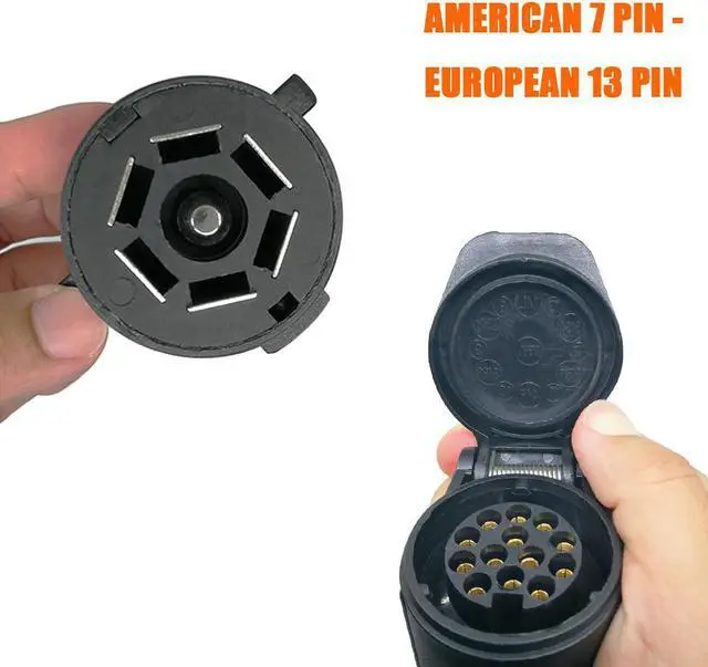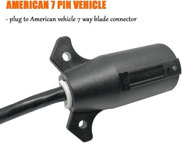 b) Connect the Converter to the existing US 7 way RV blade socket in the vehicle. c) Insert the other side EU trailer plug into the socket Converter.