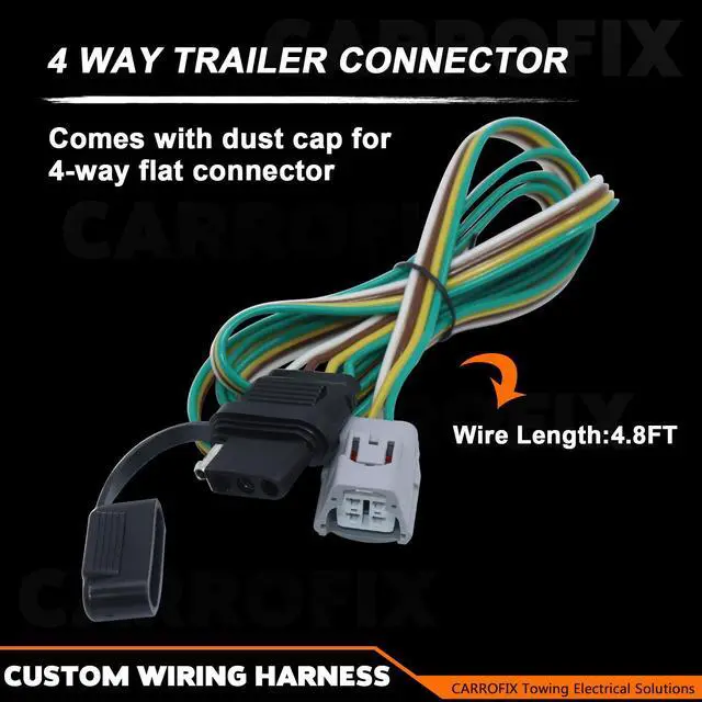 Provides a 4-way flat connection to power your trailer tail lights, brake signal lights and turn signals.