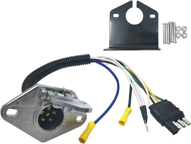 4 Pin Flat to 6 Pole Round Trailer Wiring Adapter w/ Mounting Bracket