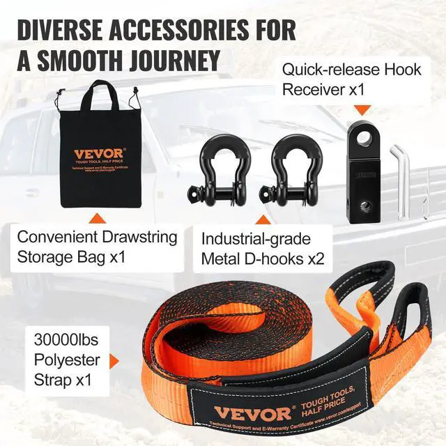 Item Type Name3" x 30, Heavy Duty Winch Recovery Kit with 30,000 lbs Tow Strap, 44,092 lbs D-Ring Shackles, Shackle Receiver and Storage Bag, for ATVs, Jeeps, Off-Road Vehicles, Trucks