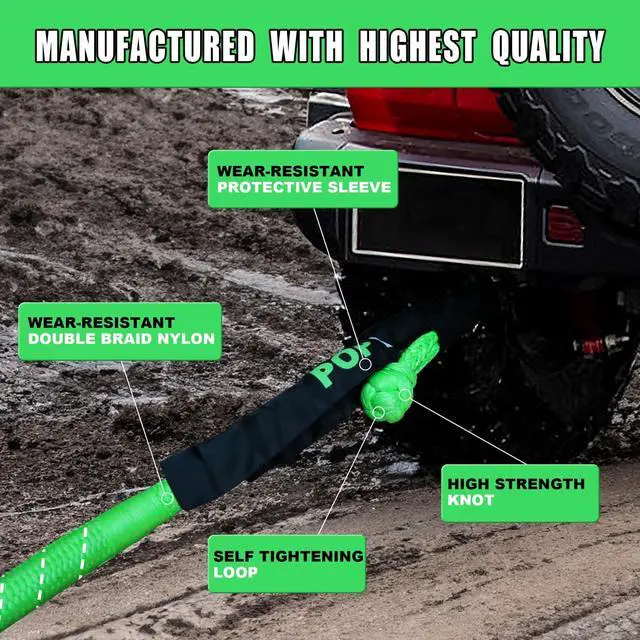 1"x30ft tow rope with a lab tested and certified breaking strength up to 48,000lbs. High quality materials and workmanship, 100% best Nylon N66 rope, double braided structure, sand and mud will not get in. The rope can withstand extreme temperatures between -40 degrees and up to 215 degrees Fahrenheit. Ensure reliable working ability in various off-road scenarios, suitable for large sized SUVs, tractors, Jeeps, ATVs, UTVs, snowmobile and small trucks.