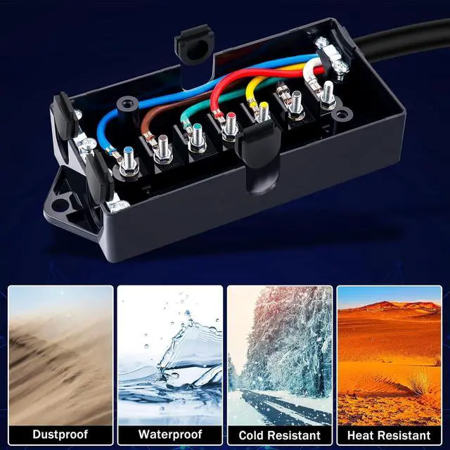 Junction Box: the junction box is equipped with 7 color-coded terminals and wires, which can easily identify the corresponding function of the wires for easy wiring. The sturdy junction box is waterproof and dustproof, increasing the service life of the trailer cord