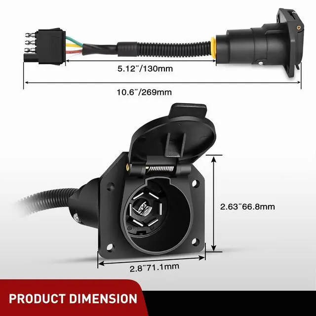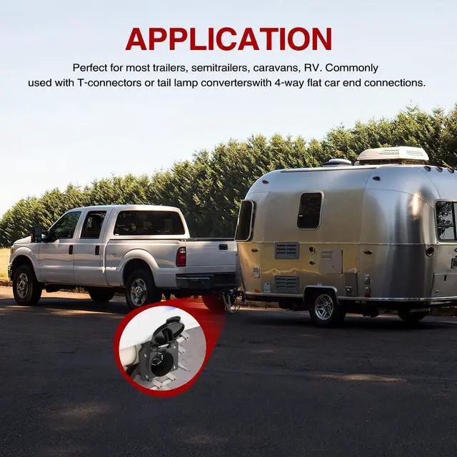 FUNCTIONALITY: 4-pin flat socket designed as a 7-pin blade round socket. Fits most vehicle wiring components such as turn signals, brakes, reverse lights and auxiliary power.