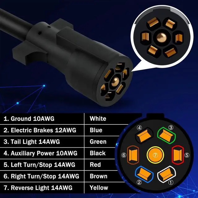 Detailed wiring instructions: The trailer wire uses 7 color-coded wires. The color codes adopted are applicable to most RV trailer wiring standards. However, due to differences among different trailer manufacturers, we have updated the detailed instructions. Please read them carefully before use. Please refer to the wiring instructions and connect the cables according to their color and function to avoid errors