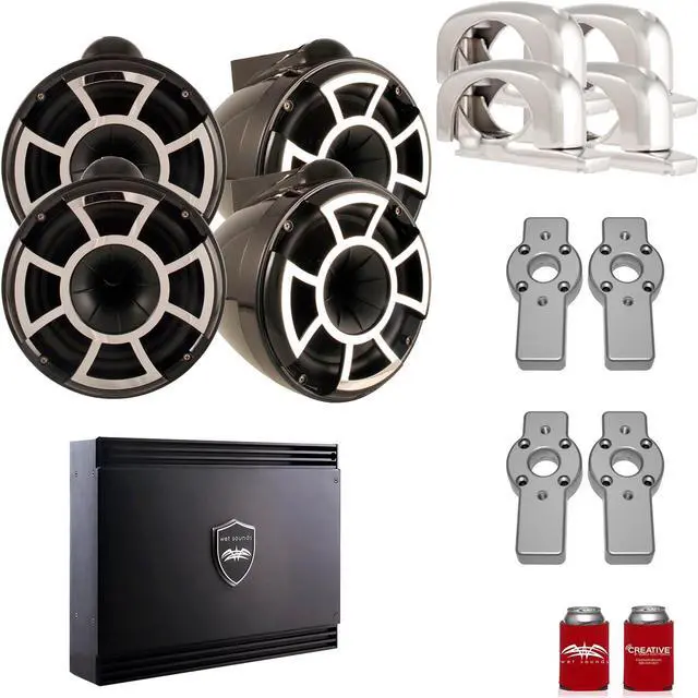 Wet Sounds for Mastercraft 2007 & Up - Two Pairs Of REV10 10" Black Swivel Tower Speakers with Adapters & SDX2 Amplifier- This bundle is for Mastercraft boats years 2007 and up. This bundle includes two pairs of Wet Sounds REV 10 Swivel Clamp Tower Speakers - Black, a Wet Sounds Sinister SDX2 2-Channel Amplifier, relevant clamps and adapters, and a Wet Sounds coozy.