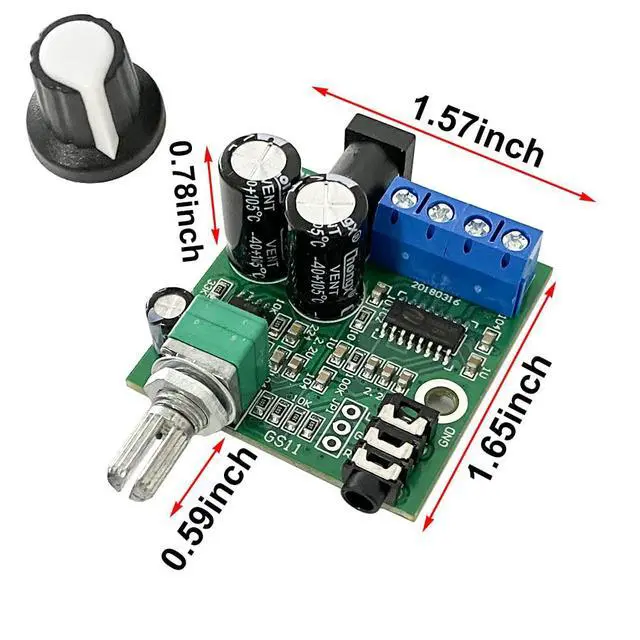 Board size: 1.57x1.65x0.78inch (LxWxH), excluding potentiometer handle length (Pot. protruding length 0.59inch).