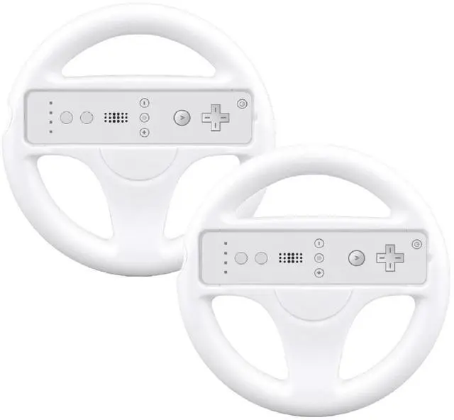 Rev up your racing action with this 2x Wii Racing Wheel + 2x Wii Remote bundle in classic white. Whether you're playing Mario Kart or other fast-paced Wii Games, this set delivers a smooth, exciting driving experience that puts you right in the race. Slide your Wii Controller into the Racing Wheel to enjoy tighter turns, better grip, and a true Gaming Steering Wheel feel. Its perfect for fans who love speeding through tracks with their favorite driver characters or competing against iconic kart-racing character groups.