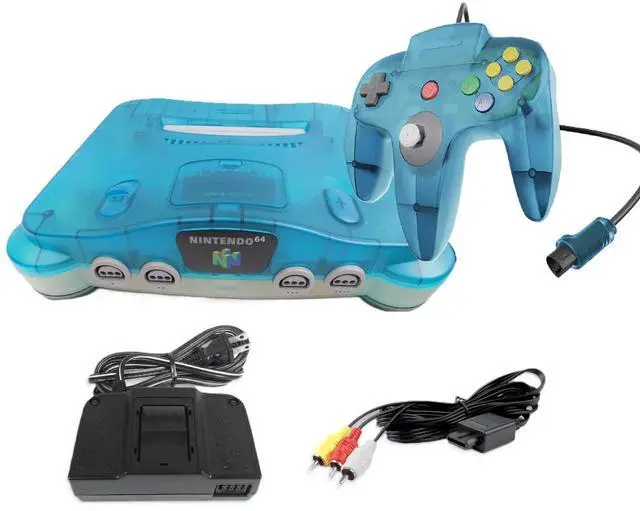Relive the golden age of gaming with the Nintendo 64 the iconic game system that redefined 3D gaming. Whether you're diving into action-packed adventures or nostalgic multiplayer battles, the Nintendo 64 N64 delivers unmatched retro fun. The Package includes N64 Console in Ice Blue Color with Matching Controller and all cables. Compatible with a huge library of legendary N64 games, this console offers timeless classics like Super Mario 64, The Legend of Zelda: Ocarina of Time, GoldenEye 007, and Mario Kart 64. Built with durable hardware and a unique trident-style controller, the N64 is perfect for collectors, enthusiasts, and anyone ready to experience Nintendos most innovative era. Grab your favorite Nintendo 64 titles, invite your friends, and jump into the ultimate retro gaming experience with this must-have game system.
