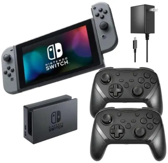Level up with this Refurbished Nintendo Switch 32GB Bundle. Featuring iconic Gray Joy-Cons and two RetroFam Pro Controllers, this set is built for multiplayer fun. Transform from a home console to a portable handheld in seconds. Whether youre racing in Mario Kart or exploring Hyrule, the additional Pro Controllers ensure comfort and precision for every player. Professionally inspected for quality, this bundle offers premium gaming performance and versatility right out of the box.