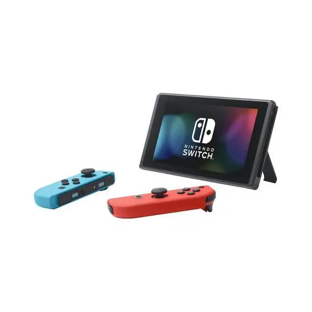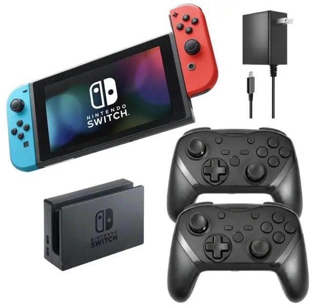Level up with this Refurbished Nintendo Switch 32GB Bundle. Featuring iconic Neon Blue and Neon Red Joy-Cons and two RetroFam Pro Controllers, this set is built for multiplayer fun. Transform from a home console to a portable handheld in seconds. Whether youre racing in Mario Kart or exploring Hyrule, the additional Pro Controllers ensure comfort and precision for every player. Professionally inspected for quality, this bundle offers premium gaming performance and versatility right out of the box.
