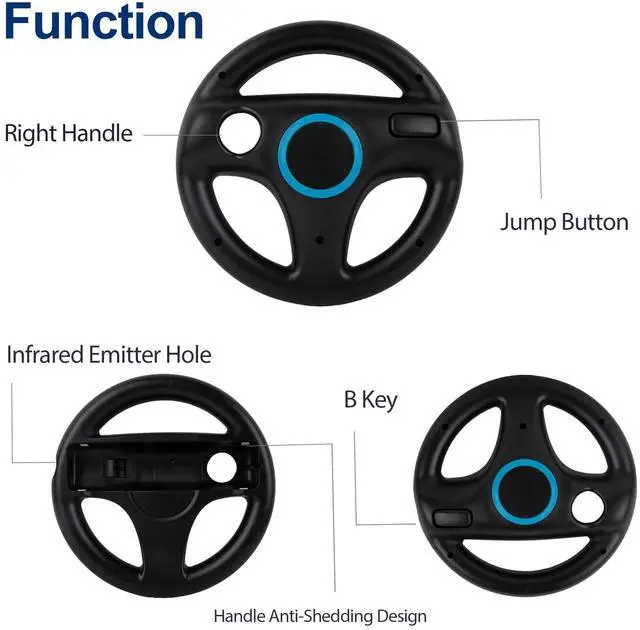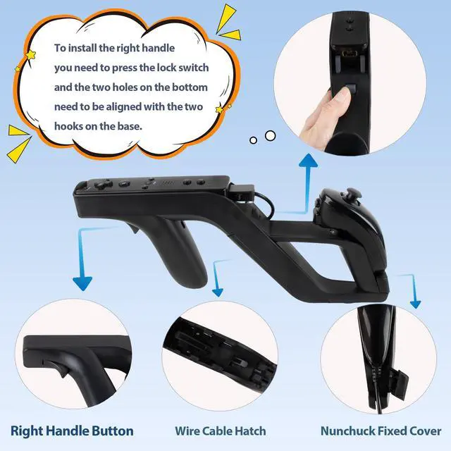 Ergonomic & Secure Grip DesignThe Wii racing steering wheel, firm grip design reduces hand fatigue when holding for a long time and makes your grip more comfortable. And the lightweight gun has intuitive trigger buttons for a realistic gaming experience