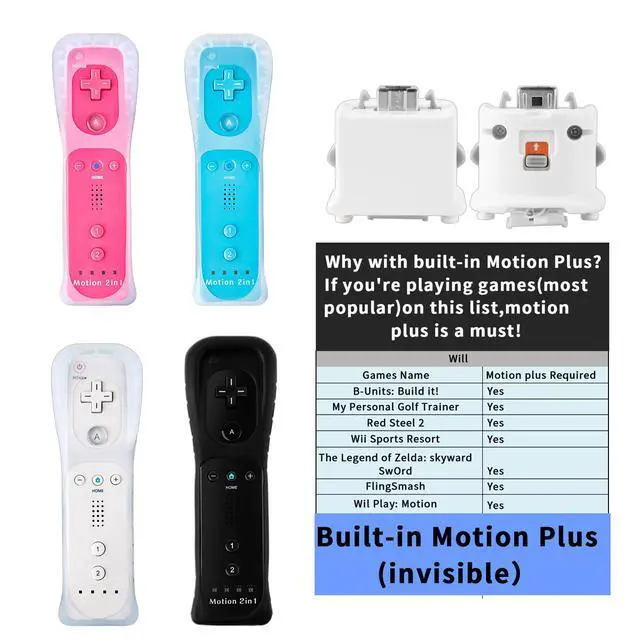 CompatibilityThe Motion Plus Wii Remote is compatible with Wii and Wii U consoles and supports all Wii games. The 4-piece game controller set enables multiplayer gaming for a more enjoyable experience. Multiple color options provide you with more styling choices.