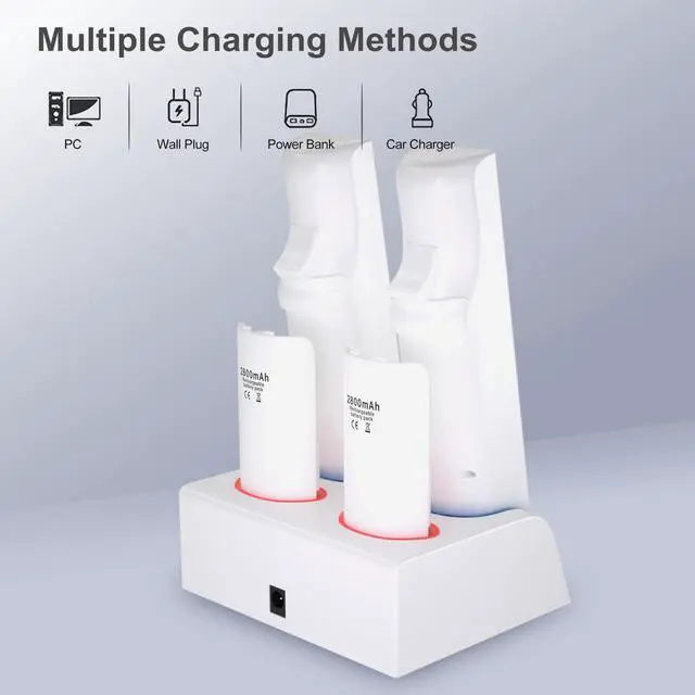 - Come with 4 pack 2800mAh Ni-MH wii battery pack rechargeable. No need to change the regular AA battery.Save money and protect the environment by using these wii remote battery pack rechargeable.