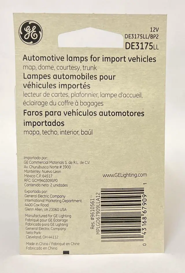 (6 lamps) GE DE3175LL Automotive Miniature Lamp Light, Long Life, BASE SV8.5MM, T3.25 (T3 1/4), 12 Volt