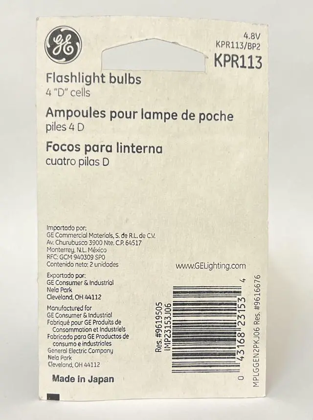(case of 10 bulbs) GE KPR113 Flashlight, hand lantern, 4w 4.8v B3.5 Bulb, low voltage, hand lantern, flashlight light bulb, single contact miniature base