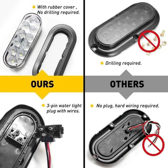 Package Includes2 x 6" 10 LED Round Tail Lights (with rubber grommet & plug)