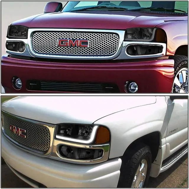 DNA Motoring HL-LB-DAN99-BK-SM-AM For 2001 to 2007 GMC Sierra 1500 Classic Yukon Denali LED DRL Light Bar Headlight+Bumper Lamp Black Housing Smoked Lens Amber Corner 02 03 04 05 06