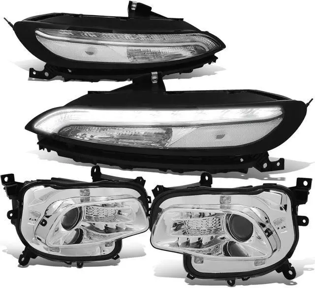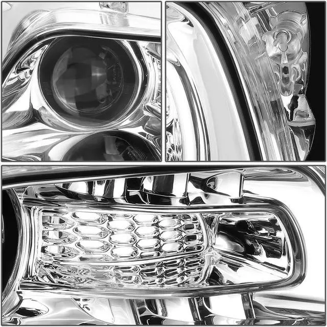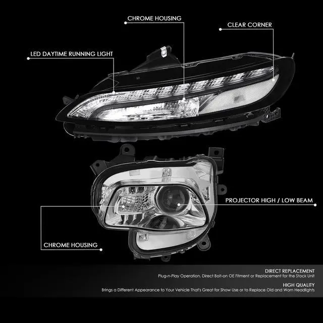 - ?This Item Includes?Comes with a Complete Set of Chrome Housing / Clear Lens / Clear Reflector Projector Headlights, Parking Turn Signal Lights with LED Daytime Running Light Strip (Driver and Passenger side); Note: Reuses OEM Bulbs