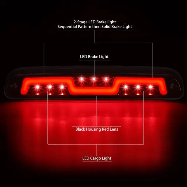 Our LED third brake light is a quick and easy way to dress up your pickup truck. When lit, the bright LEDs (Light Emitting Diodes) are illuminated, and shine up to ten times brighter than standard light bulbs. The LED third brake light has a durable Polycarbonate Lens with free form reflector, and available with either the Clear lens or custom Smoked lens.