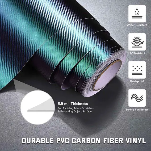 - Premium Quality - Made of PVC carbon fiber vinyl, the wrap roll is water & UV resistant, it can provide strong toughness & long service life; 5.9 mil thickness for protecting object surface from dust, dirt and minor scratches, will not harm the paint or natural finish