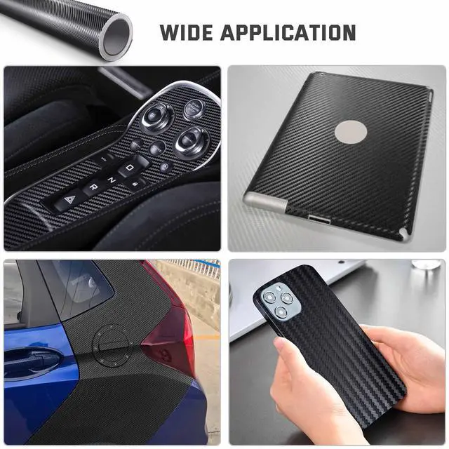- Multi-function & DIY Installation - 5x49 ft 3D carbon fiber vinyl wrap roll is easy to be sticked on the surface of any objects you like to create DIY decoration, suitable for using on cay body & car interior, motorcycle parts, metal parts, phones, laptops, furniture, windows