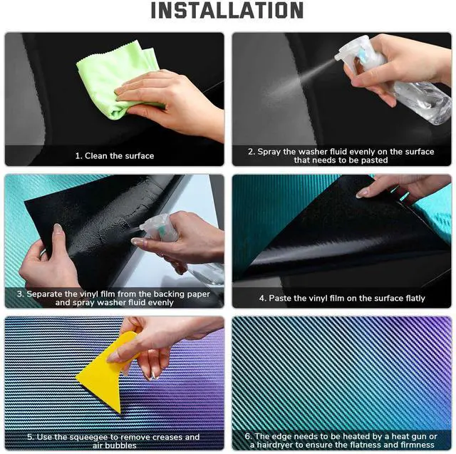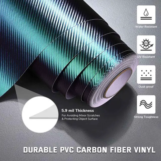 - Premium Quality - Made of PVC carbon fiber vinyl, the wrap roll is water & UV resistant, it can provide strong toughness & long service life; 5.9 mil thickness for protecting object surface from dust, dirt and minor scratches, will not harm the paint or natural finish
