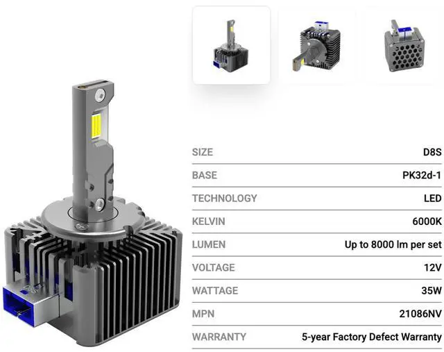 Plug-and-Play Installation Directly fits into D8S HID headlight housings with no modifications required. Since DAMA NEO VISION D8S LED bulbs are plugged directly into the existing HID ballast, the vehicle is free of the messages.